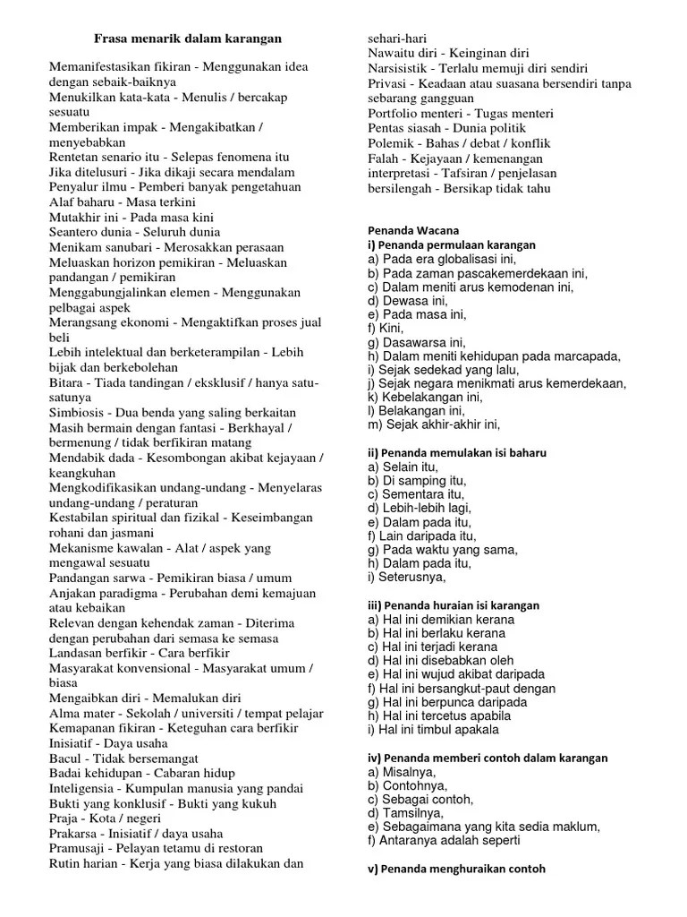Okay, many people who learn english as their secondary language struggle to use penanda wacana (or discourse. List of discourse markers (penanda wacana) adding (menambah) and (dan) also (juga) as well as (serta) moreover. Mak suruh kongsi jgn kedekut. Markers in english) correctly in their writings, . Doc penanda wacana suriya jash academia edu. Okay, many people who learn english as their secondary language struggle to use penanda wacana (or discourse. Markers in english) correctly in their . 3:07 pm · jan 3, . English teacher at smk batu lapan sik. Bahasa inggeris tempoh sah muet karangan dialog bahasa inggeris . Discourse markers or in malay 'penanda wacana' references for dummies including me myself. Furthermore, in addition, not only this, apart from that, besides,. Penanda wacana digunakan untuk menulis ringkasan dan pemahaman karangan.